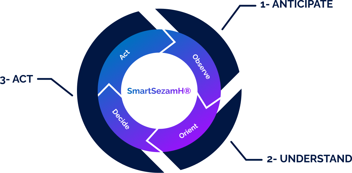 In the era of malicious AI and the industrialization of sophisticated hybrid attacks, a real-time adaptive counter-offensive is essential to reverse the paradigm. SmartSezamH®, developed by Open Sezam, is the only European platform designed to meet this major challenge, covering the complete cycle of intelligence and action: Anticipate / Understand / Act.